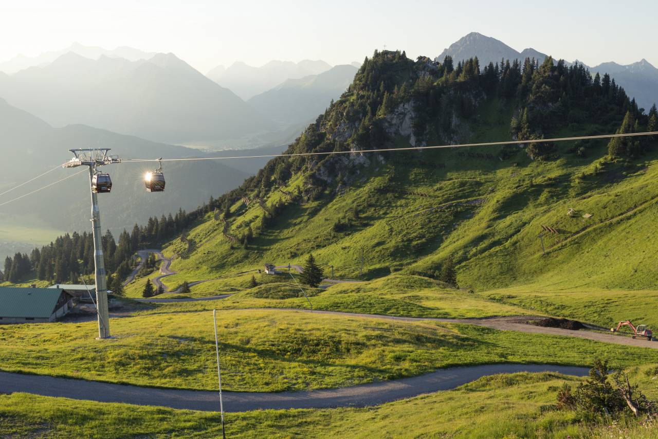 Bergbahn zum Hahnenkamm mit Panoramablick im Sommer